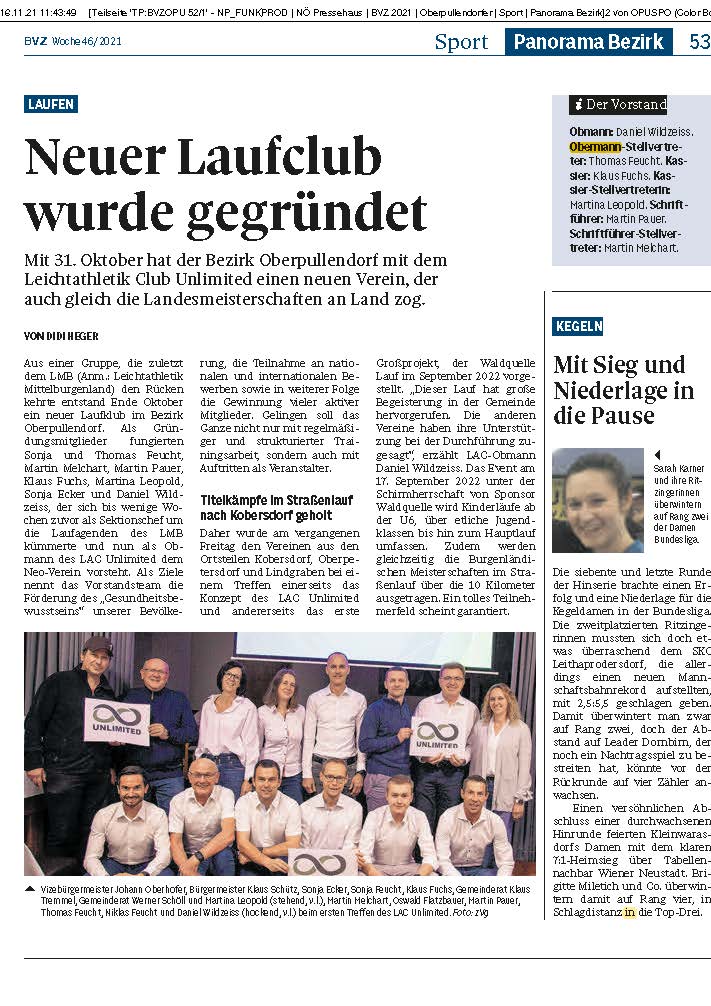 Mit 31. Oktober hat der Bezirk Oberpullendorf mit dem Leichtathletik Club Unlimited einen neuen Verein, der