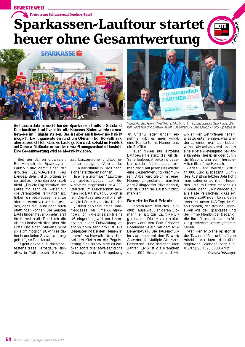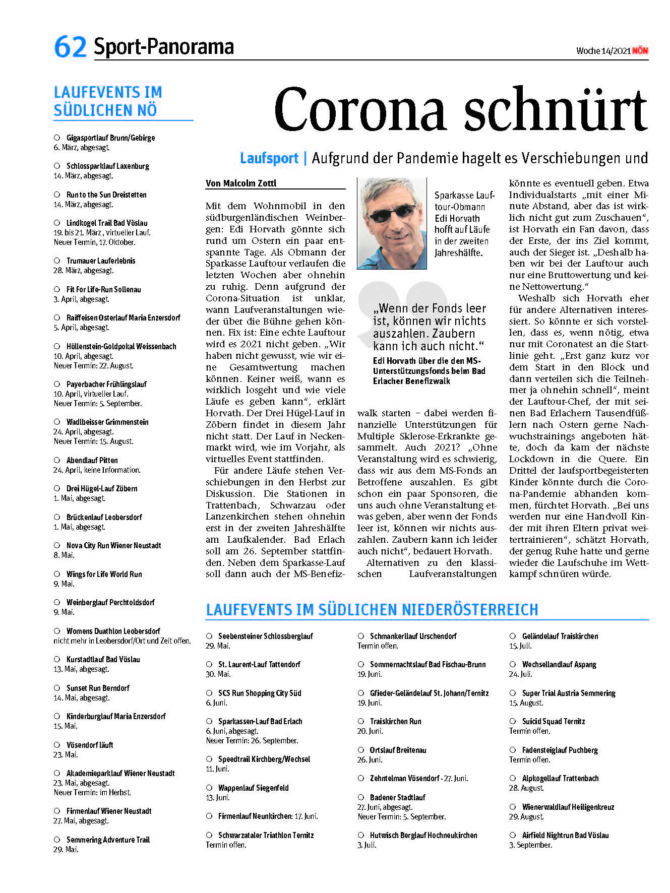 Das familiäre Lauf-Event für alle Könnens-Stufen würde normalerweise im Frühjahr starten. Das ist aber auch heuer noch nicht möglich. Die Organisatoren rund um Obmann Edi Horvath sind aber zuversichtlich, dass es Läufe geben wird, sobald im Hinblick auf Corona-Maßnahmen so etwas wie Planungssicherheit besteht.