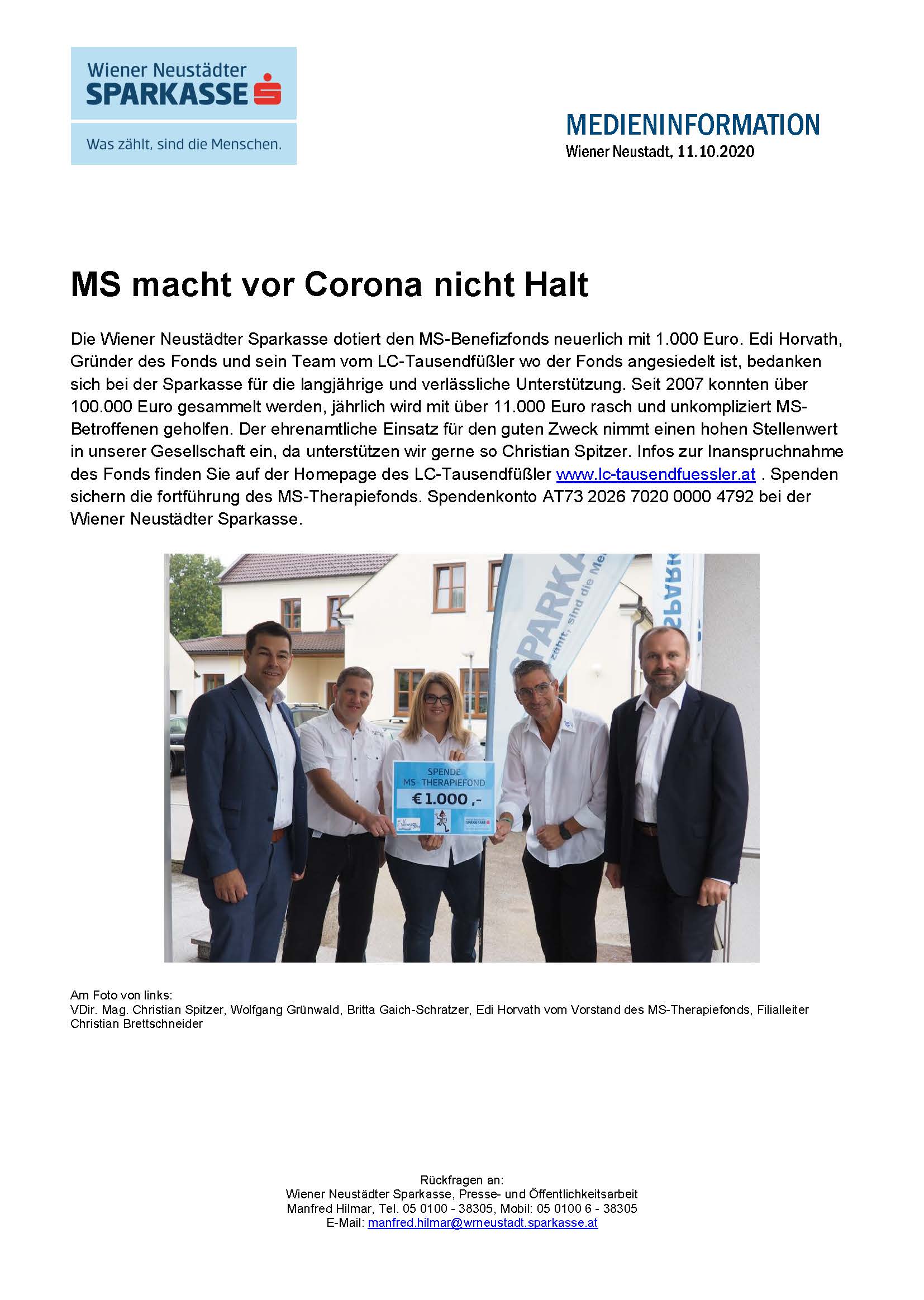 Medieninformation der Sparkasse Wr. Neustadt vom 11.10.2020